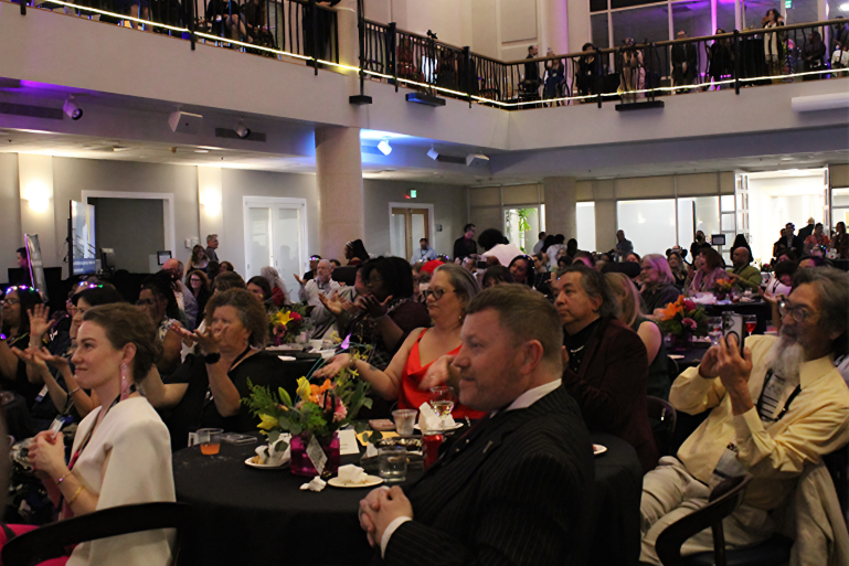 Finding levity through difficult times was a consistent refrain at DRC’s fourth annual gala, The Art of Disability Justice. 340 leaders in disability advocacy, the arts, and social justice luminaries gathered at the gorgeous Tsakopoulos Library Galleria in downtown Sacramento, California, for an evening of fellowship and connection through a shared mission: to advance disability rights for all Californians. As leaders in the disability space, we were proud to host a distinctly accessible evening, with accommodations for people with a variety of disabilities.