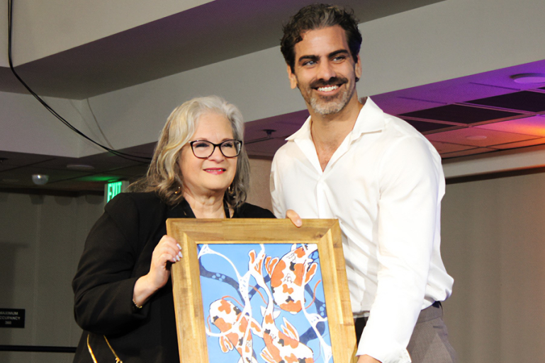 Former DRC Board Chair and Deaf Advocate Sheri Farinha with Nyle DiMarco, who received the 2026 National Leadership Award.