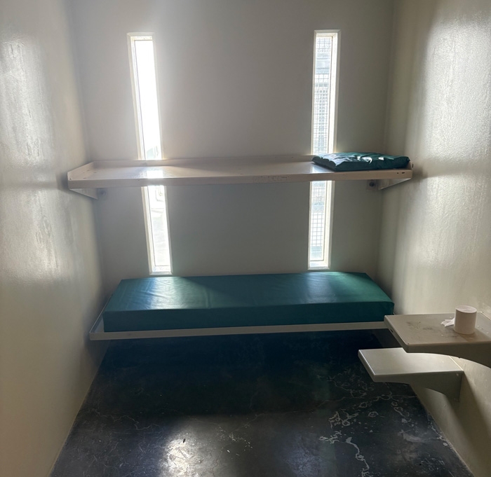 During our monitoring visit, people also shared concerns about the mental health care provided at California City. One individual reported being placed in a mental health observation cell for four days and not having access to a working toilet, shower, blanket, or toothpaste. While in the observation cell, he did not receive any psychological services. Instead, custodial staff only briefly checked on him every fifteen minutes. He reported that the harsh conditions led him to withhold the severity of his mental health symptoms to avoid staying in that cell.